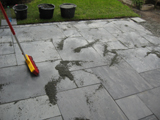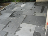 Terrassenbelag aus Schieferplatten kurz nach einem Regen