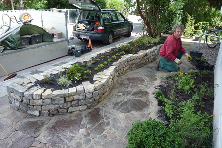 die seitlichen Wälle werden mit Duftstauden und Rosen bepflanzt